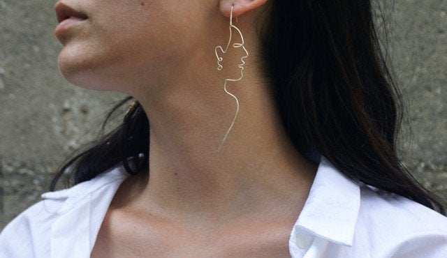 From Picasso-esque companions for your ears in multiple colours, to silver or gold hardware silhouettes of a profile, face jewellery is currently having a moment.
