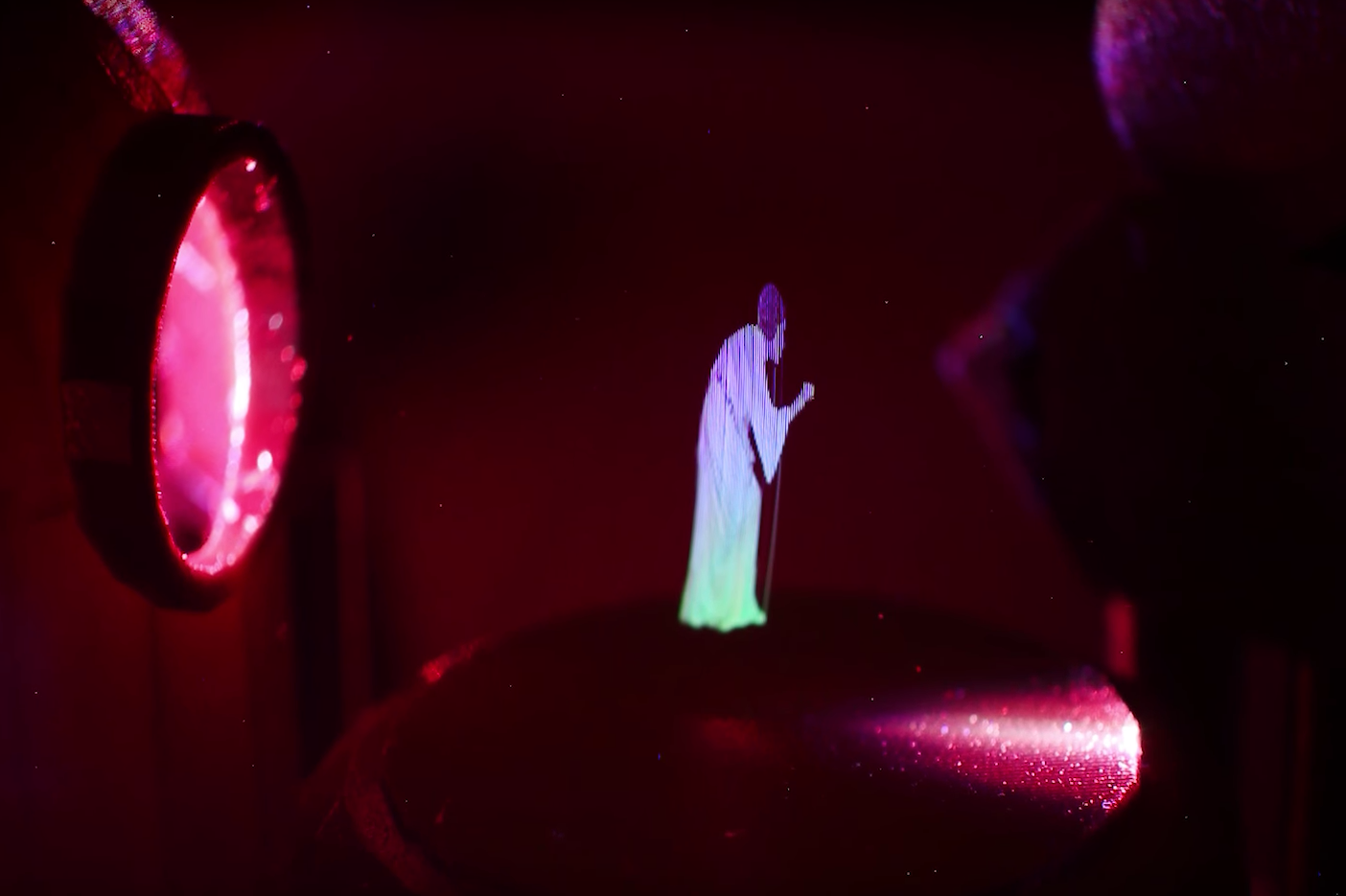“This display is like a 3D printer for light,” explains holography expert Daniel Smalley. “You’re actually printing an object in space with these little particles.”